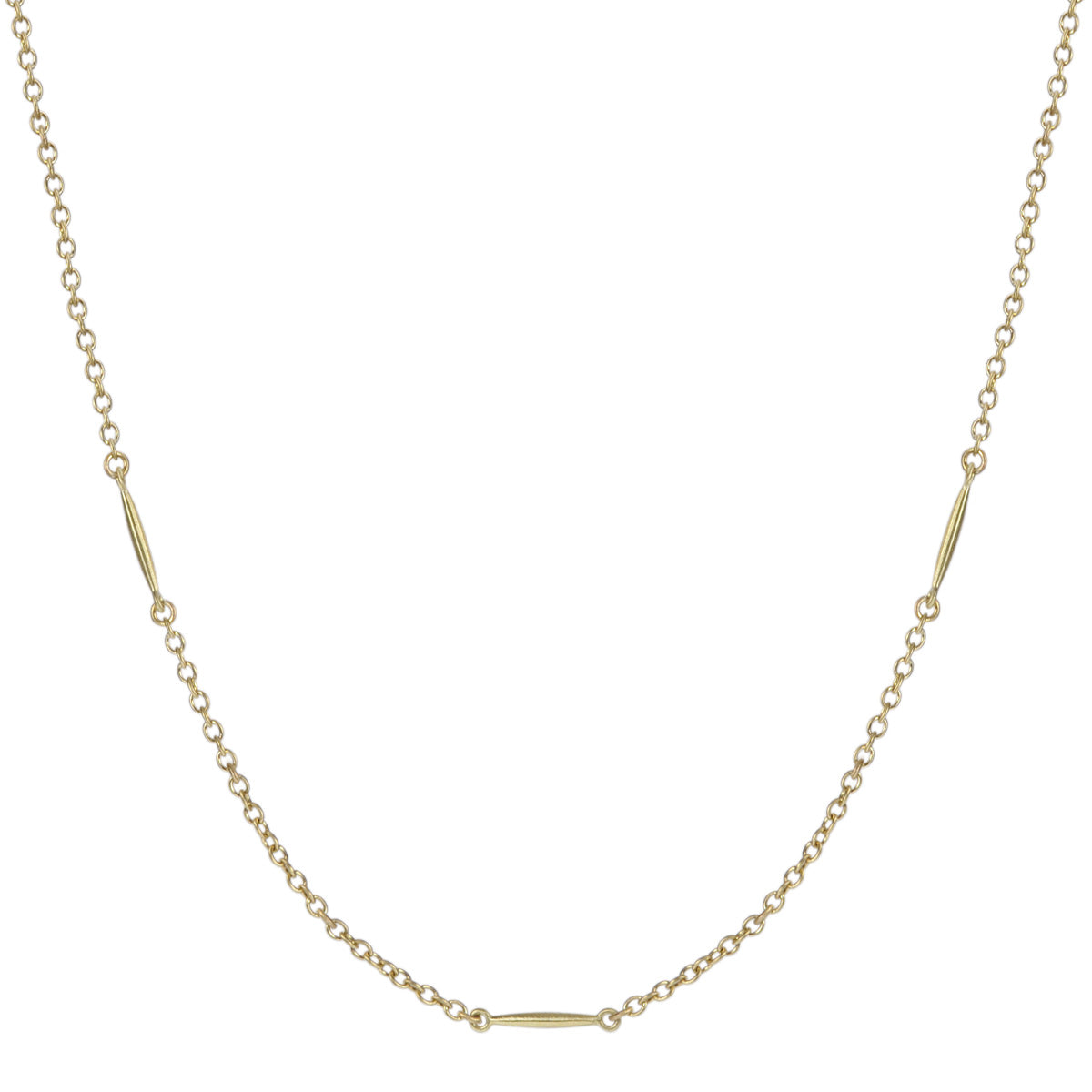 Inspired by iconic gold chain, this recycled necklace is liquid gold. Solid and fluid, our 18K gold necklace features delicate lures suspended on 18K gold chain. Each lure, 3/8” long, is spaced between 2 inches of 18K gold chain. This necklace is available in 16", 18" and 20" lengths and is finished with an easy lock closure.