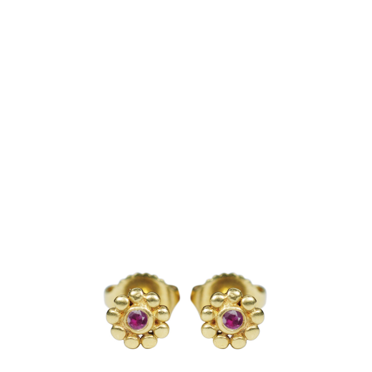 18K Gold Tiny Java Flower Stud Earrings with Rubies